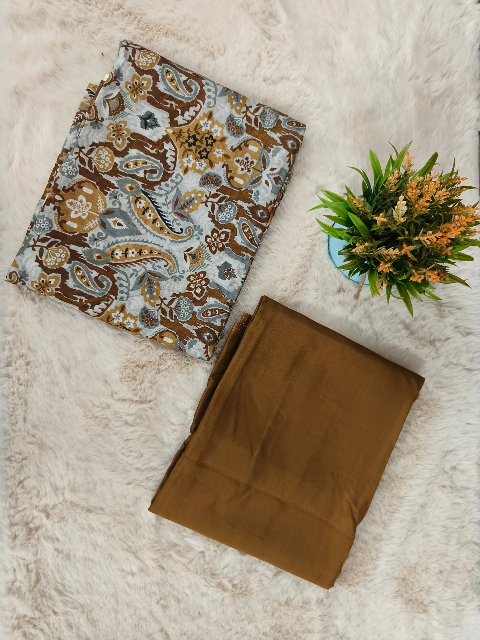 Step into sophistication with this Moscow Silk Unstitched Suit in Brown & Beige featuring elegant printed paisley embroidery. The premium Moscow silk fabric ensures a luxurious drape and breathable comfort, while the intricate design adds timeless charm. This set includes a 2.5‑meter top, 2.5‑meter bottom, and a flowing 2.25‑meter dupatta, making it ideal for festive occasions, cultural gatherings, or everyday elegance. With its rich tones and artistic detailing, this suit is a perfect blend of tradition and modernity.