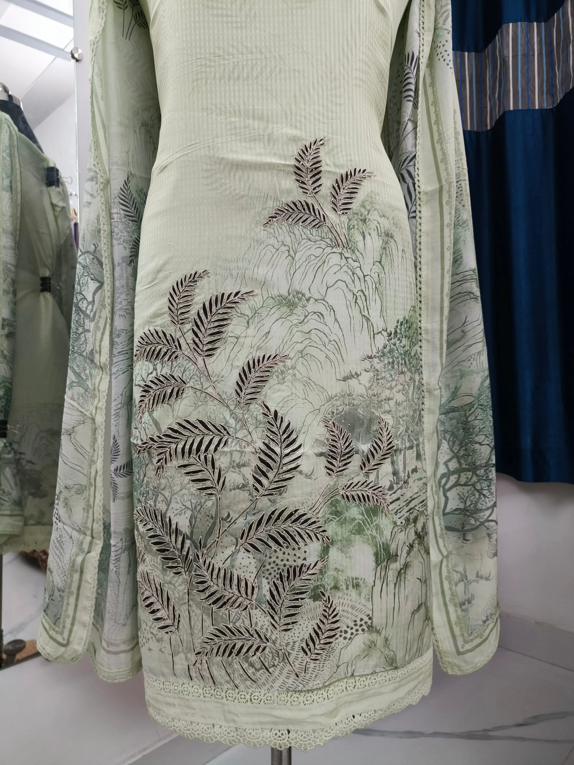 - Dupatta Pattern: Printed muslin cotton with foliage motifs