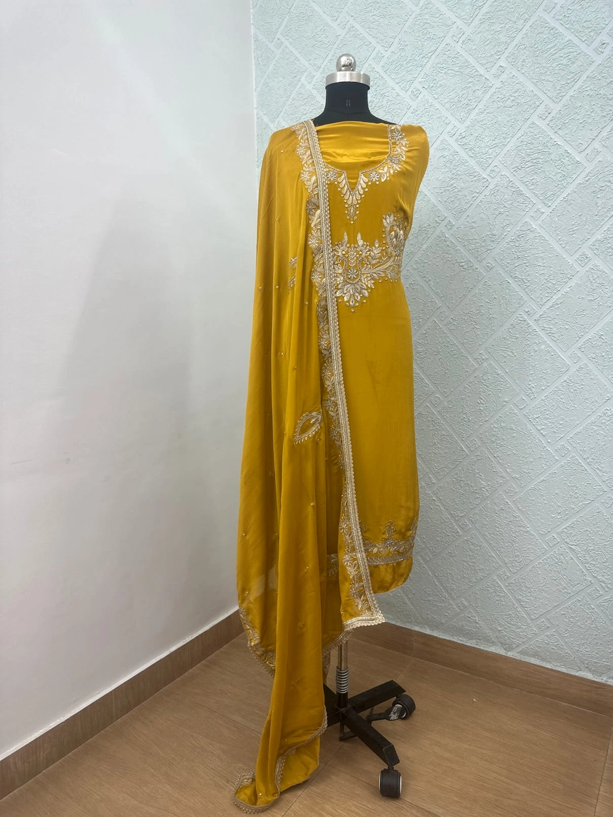 - Dupatta: Mustard Yellow with Silver Embroidery