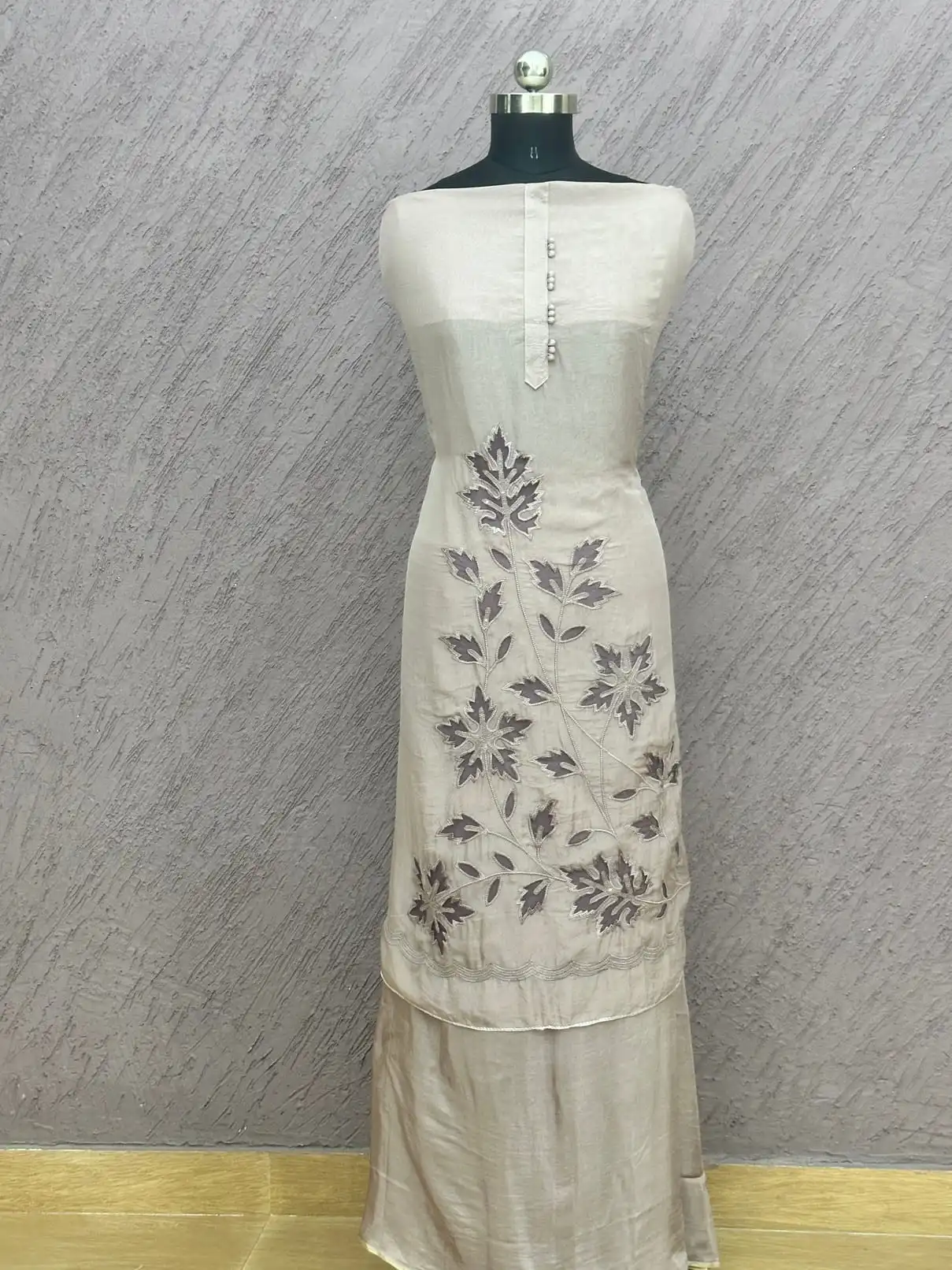 - Top Pattern: Floral embroidery with vertical button strip